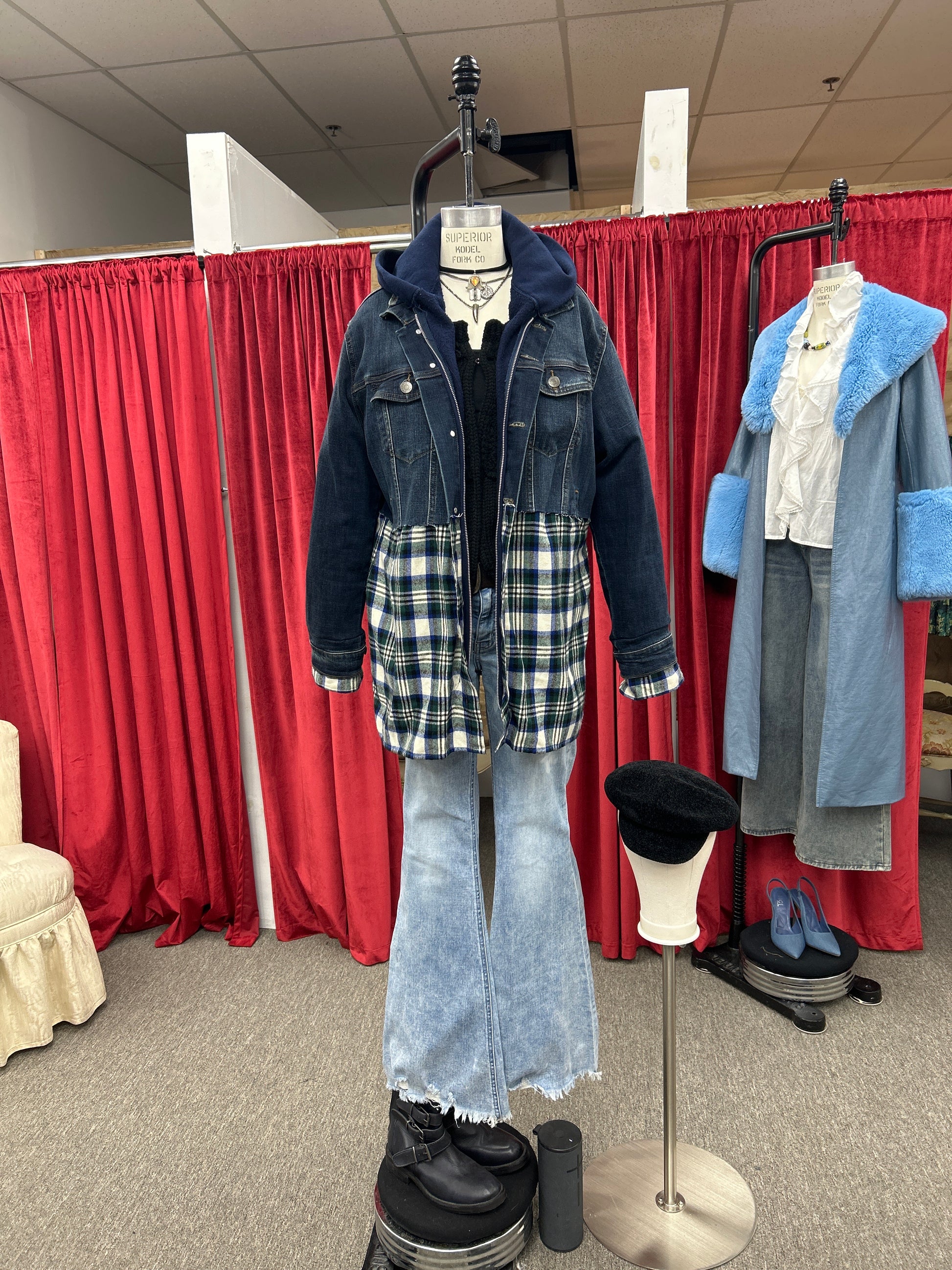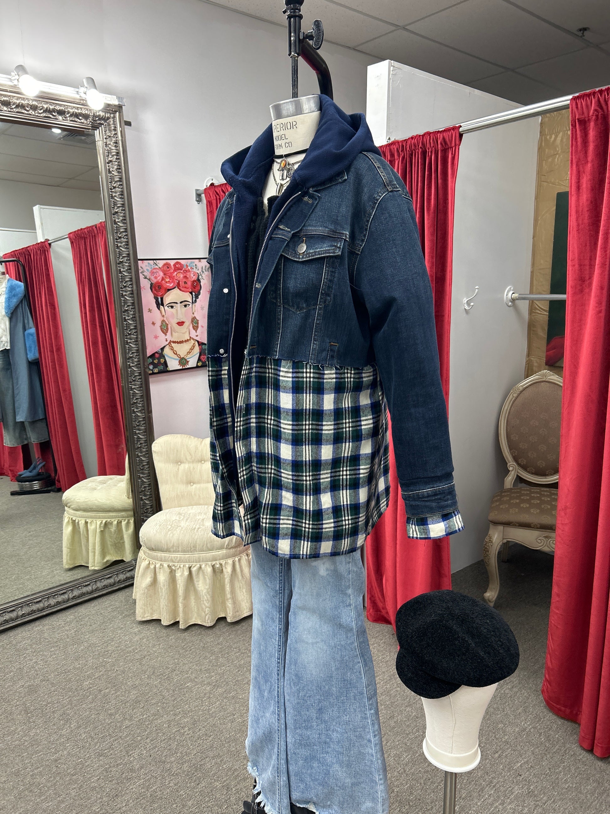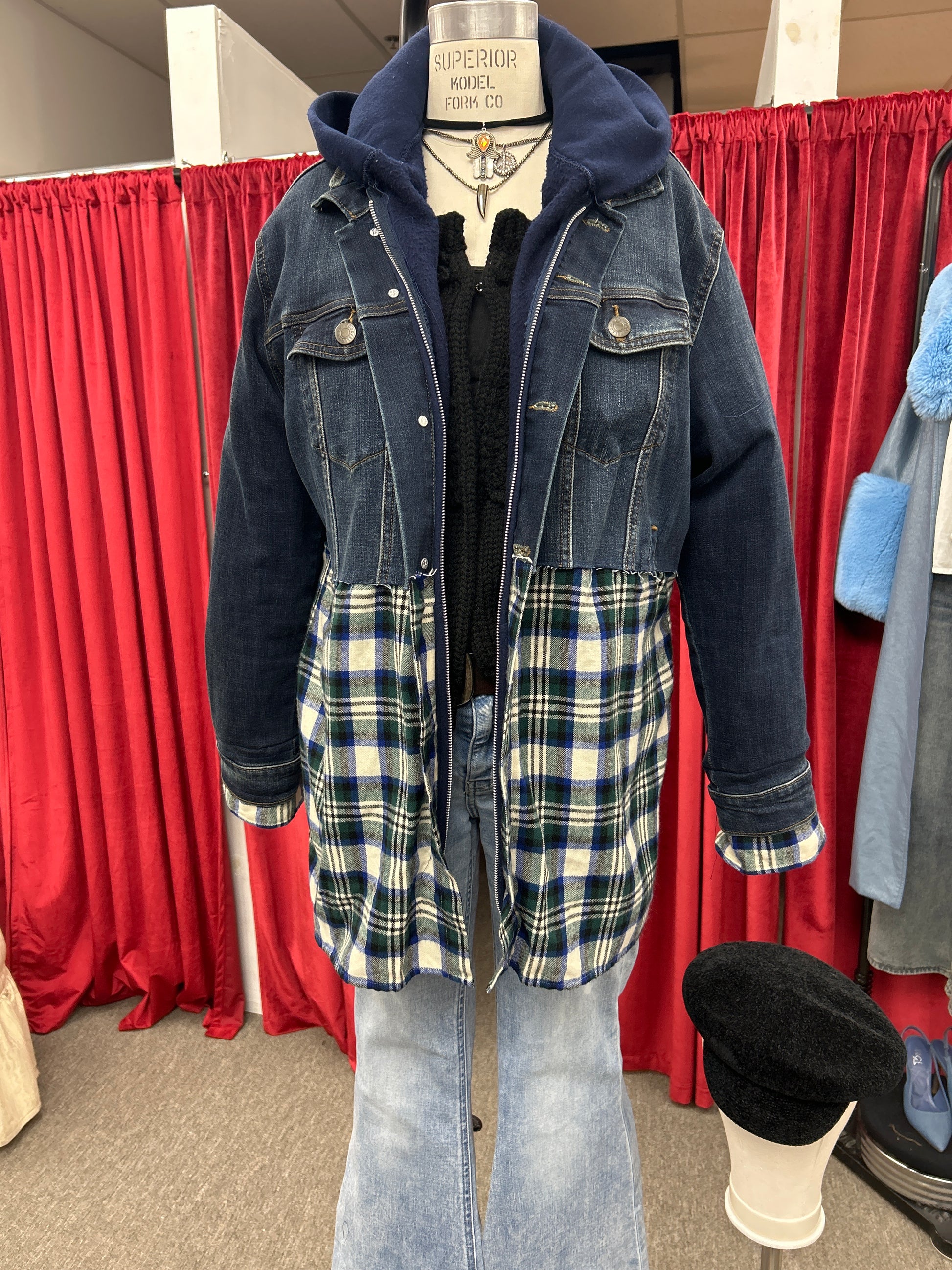 Denim and flannel hoodie lined funky jacket size medium/large $149