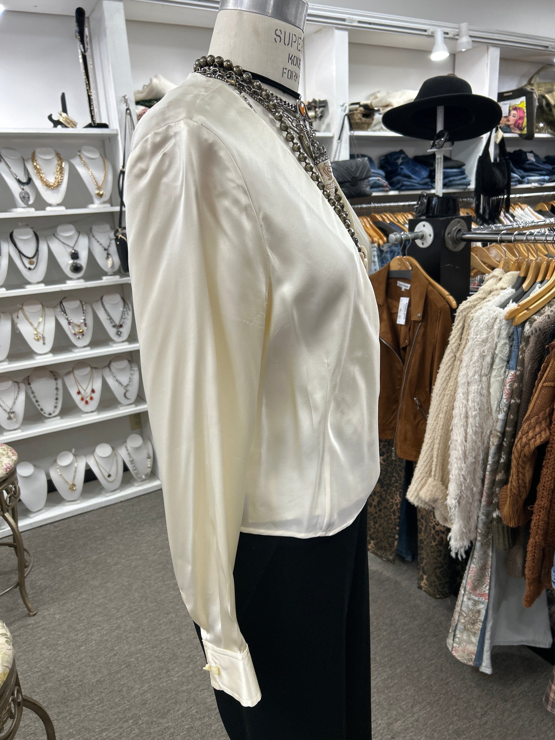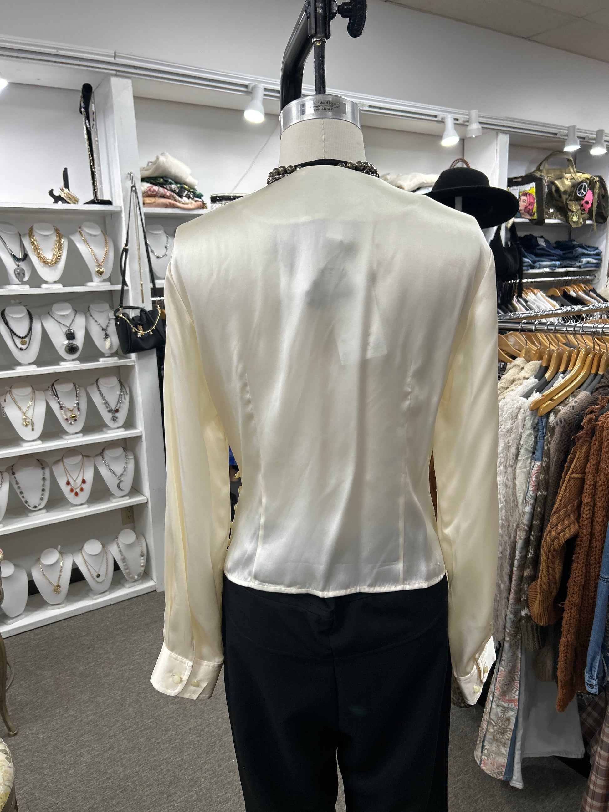 Gorgeous ecru color silk satin blouse for a dinner out size medium &98