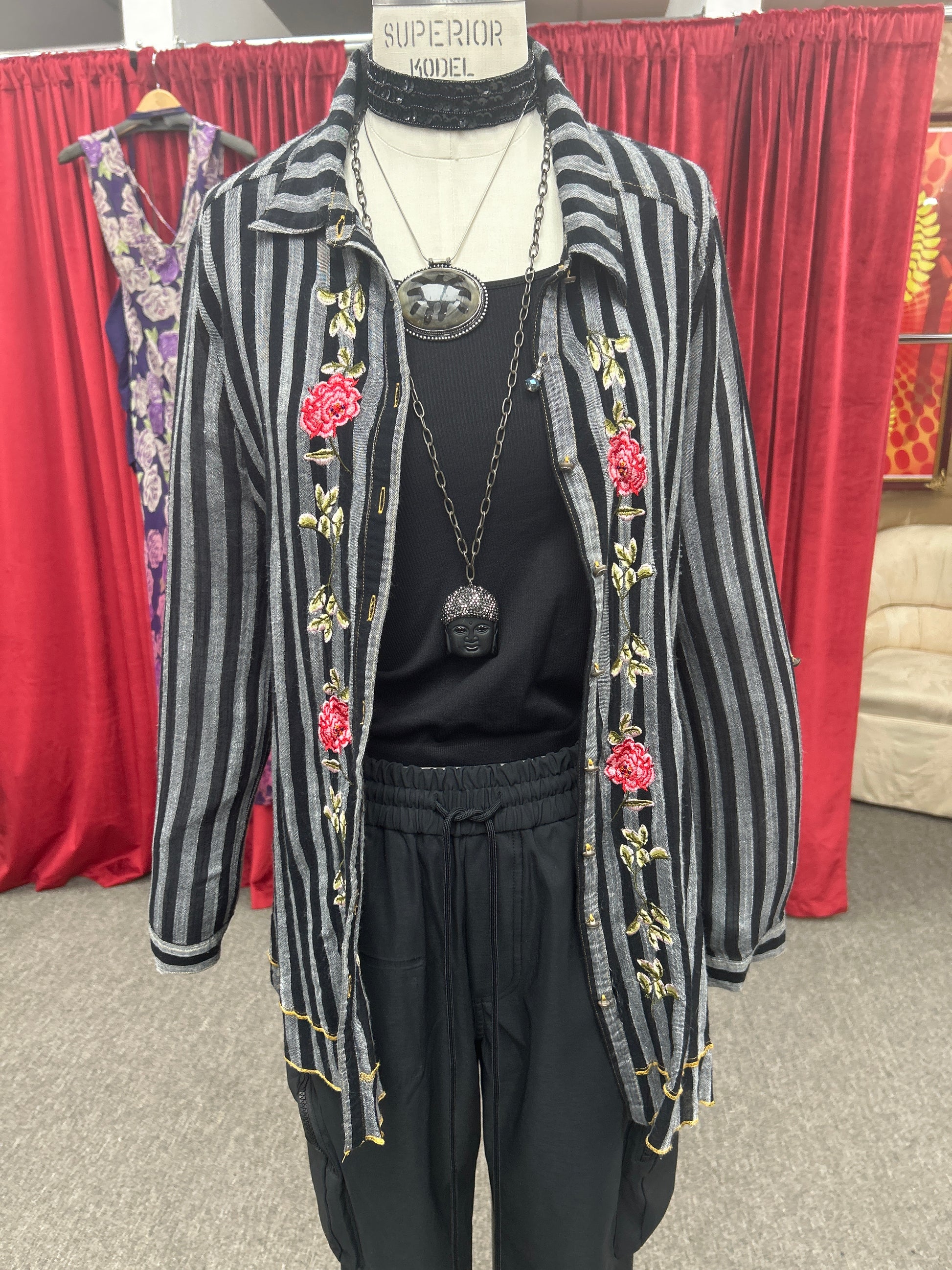 Aratta had made special button up’s are so special. Dress them up or dress them down they will look great either her way this top is size large and I also have a medium.