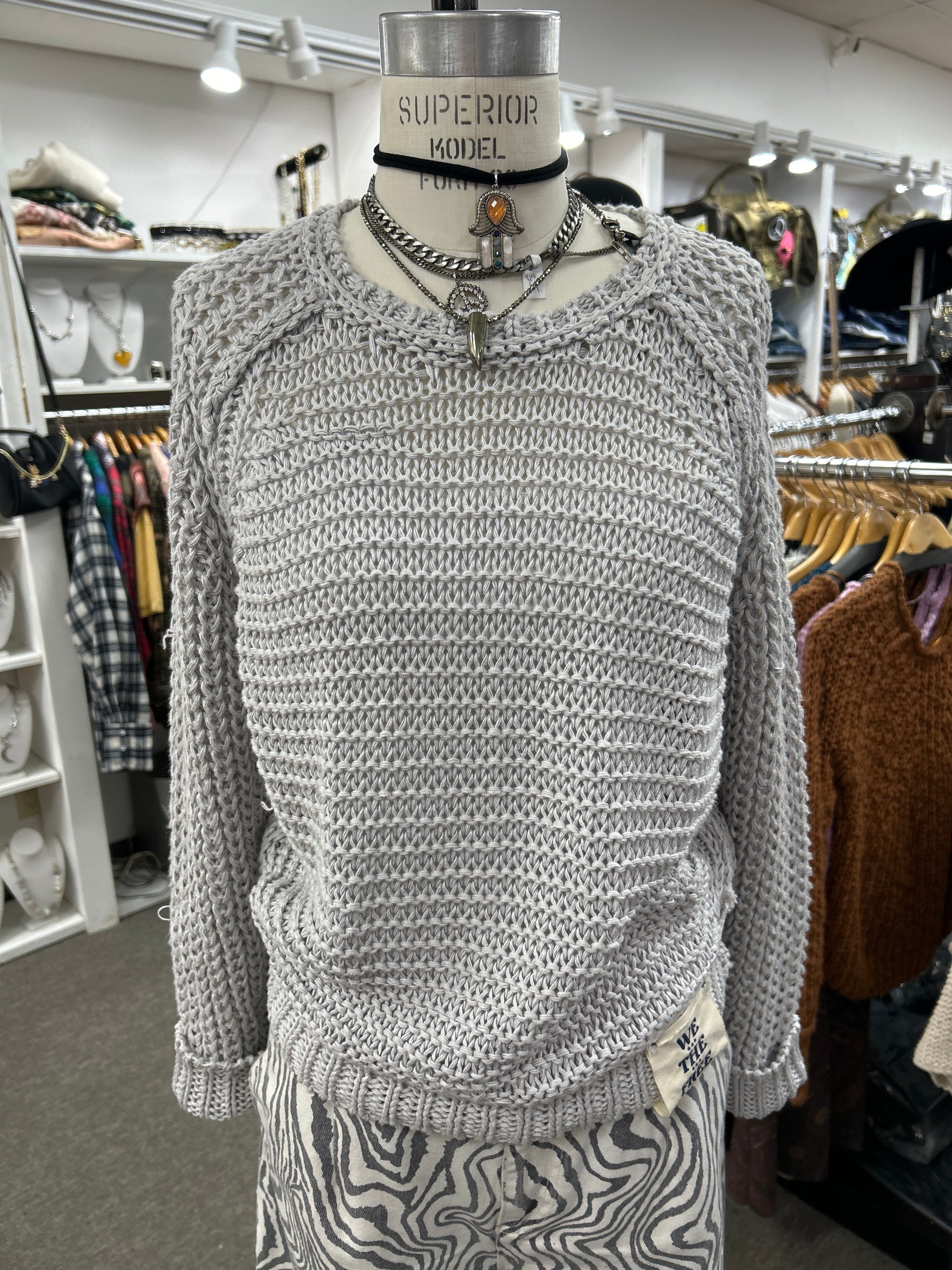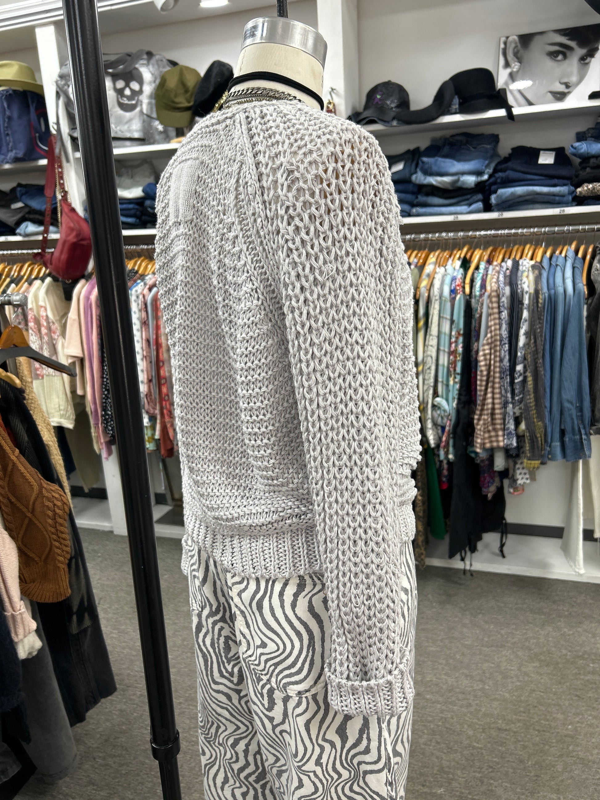 Weekend away string sweater in pearl grey one size XS